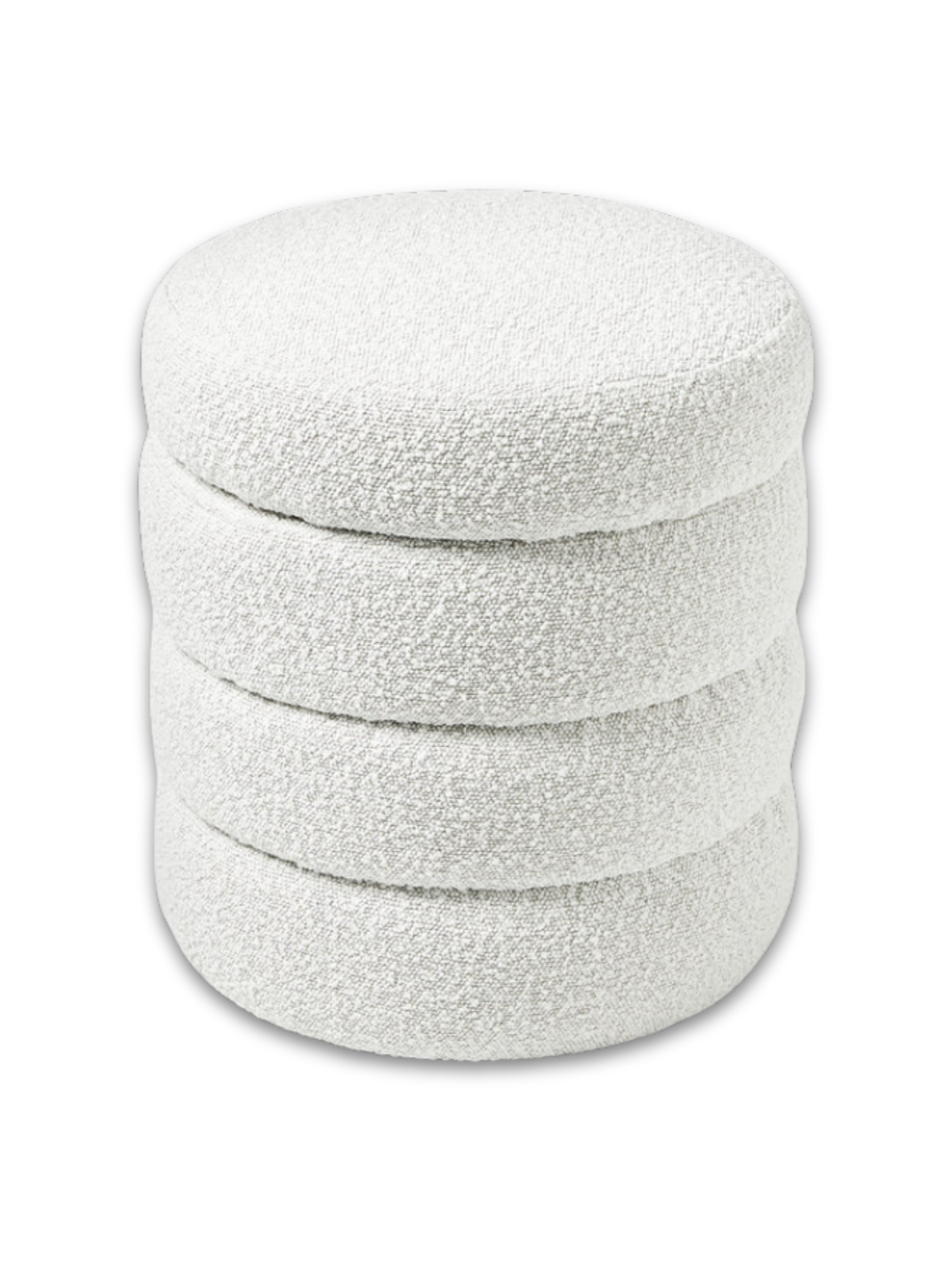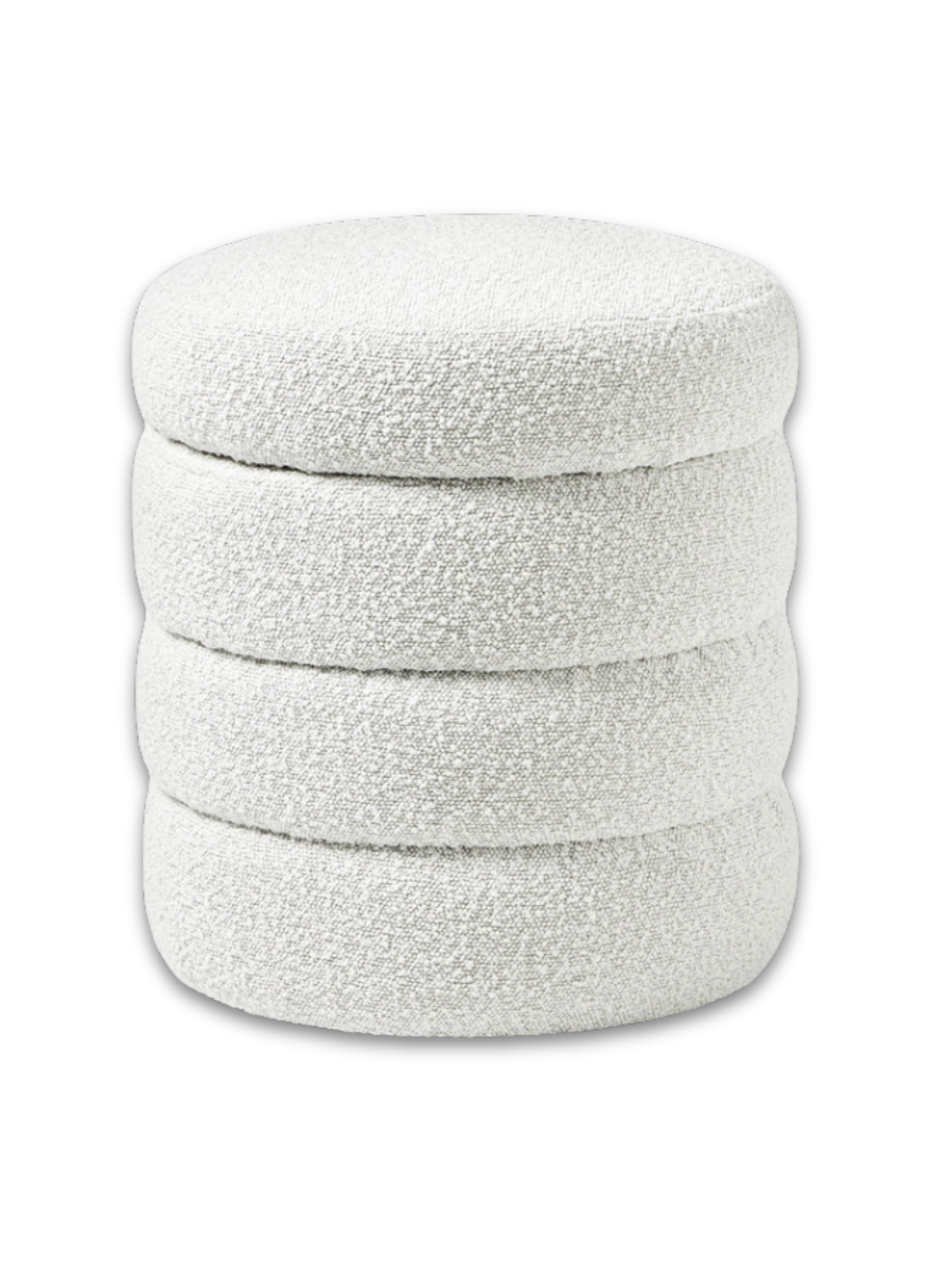 Minimalist tasarıma sahip olan sandıklı puf ortalıkta duran eşyalarınızı rahatlıkla saklamanıza olanak sağlar. Minimal boyutları ile oldukça kullanışlı olan yuvarlak puf yatak odası, çocuk odası, ofis, antre gibi alanlarda kullanılmaya uygundur.