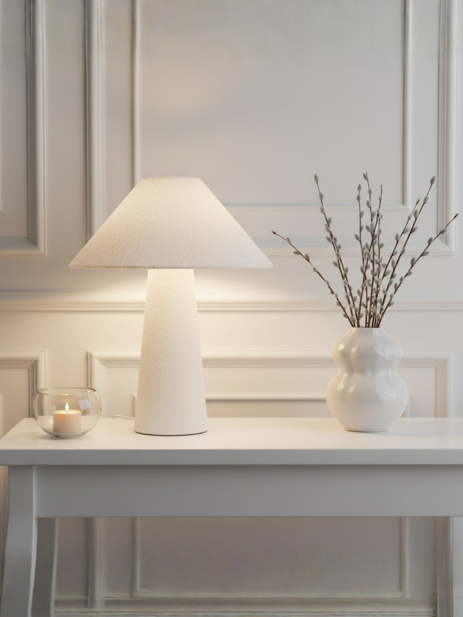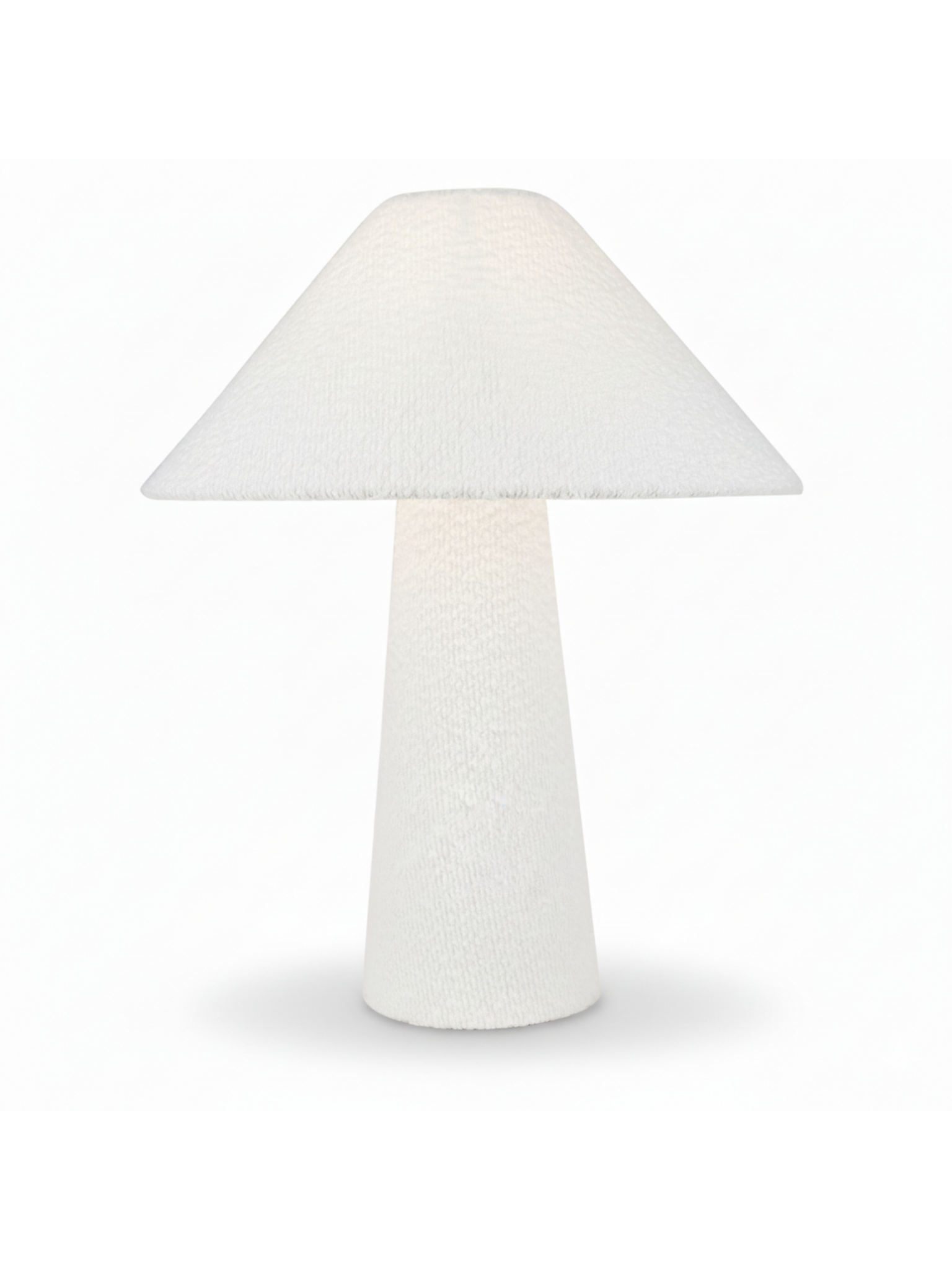 Semya Home koleksiyonunun en seçkin parçalarından biri olan Lovere Abajur, minimalist formunu özel üretim bukle kumaş kaplamasıyla taçlandırıyor.